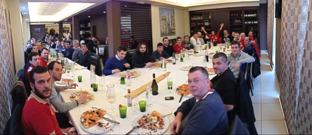 Ferrari F138 e fast food. Fernando Alonso e la pizza con i meccanici